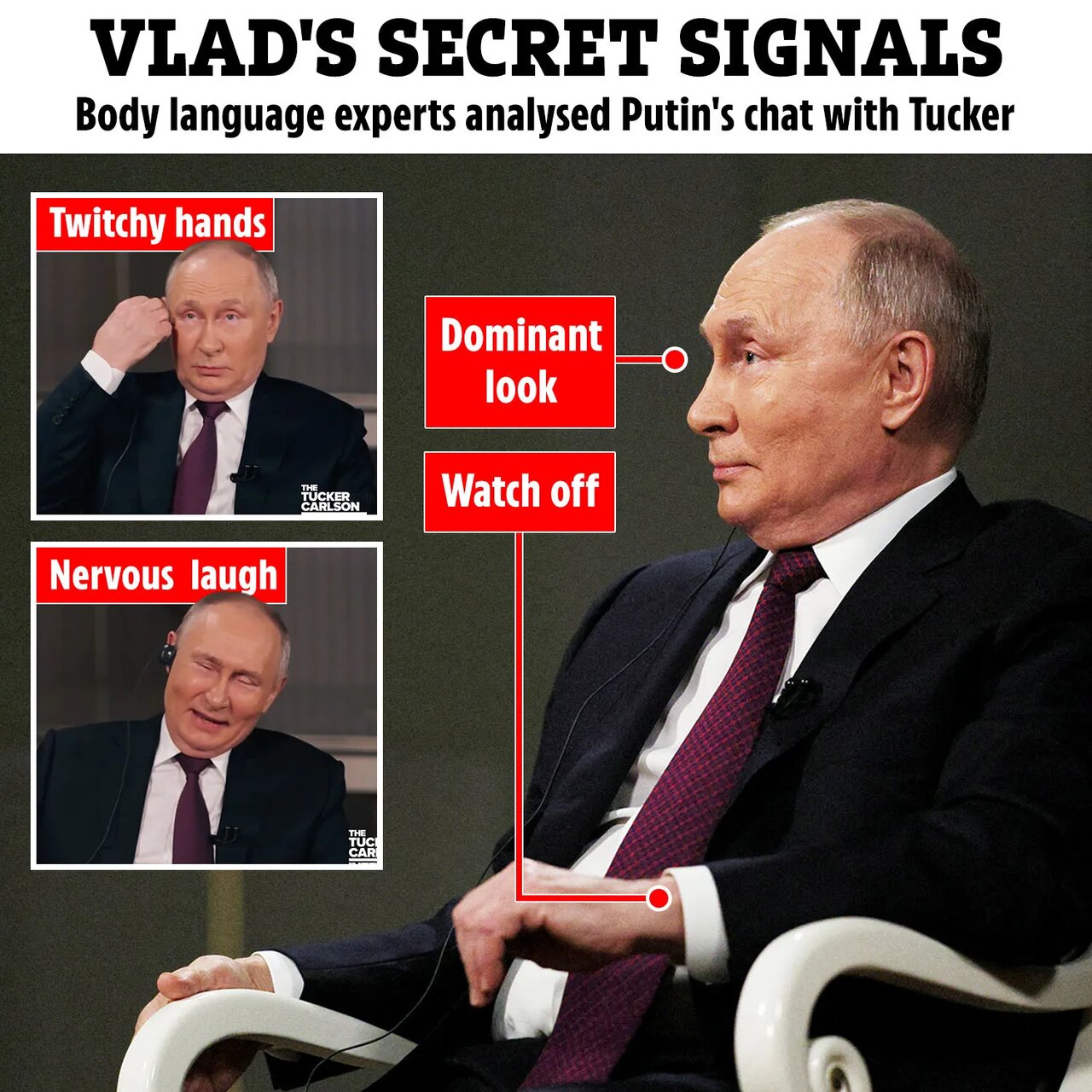 کارشناسان زبان بدن پیام های پنهان پوتین را در مصاحبه ای با تاکر کارلسون آشکار می کنند