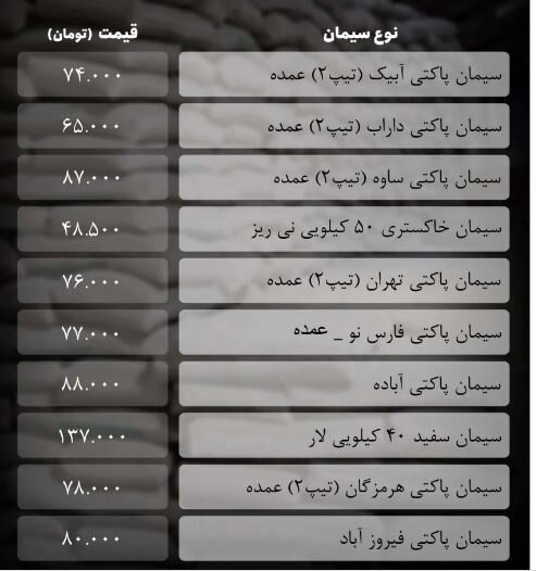 کرده و مانع هر گونه تغییر در خود شده است. در ادامه بهای انواع سیمان در
