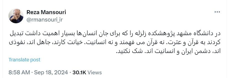 رضا منصوری، استاد بازنشسته دانشگاه شریف در شبکه اجتماعی ایکس نوشت: