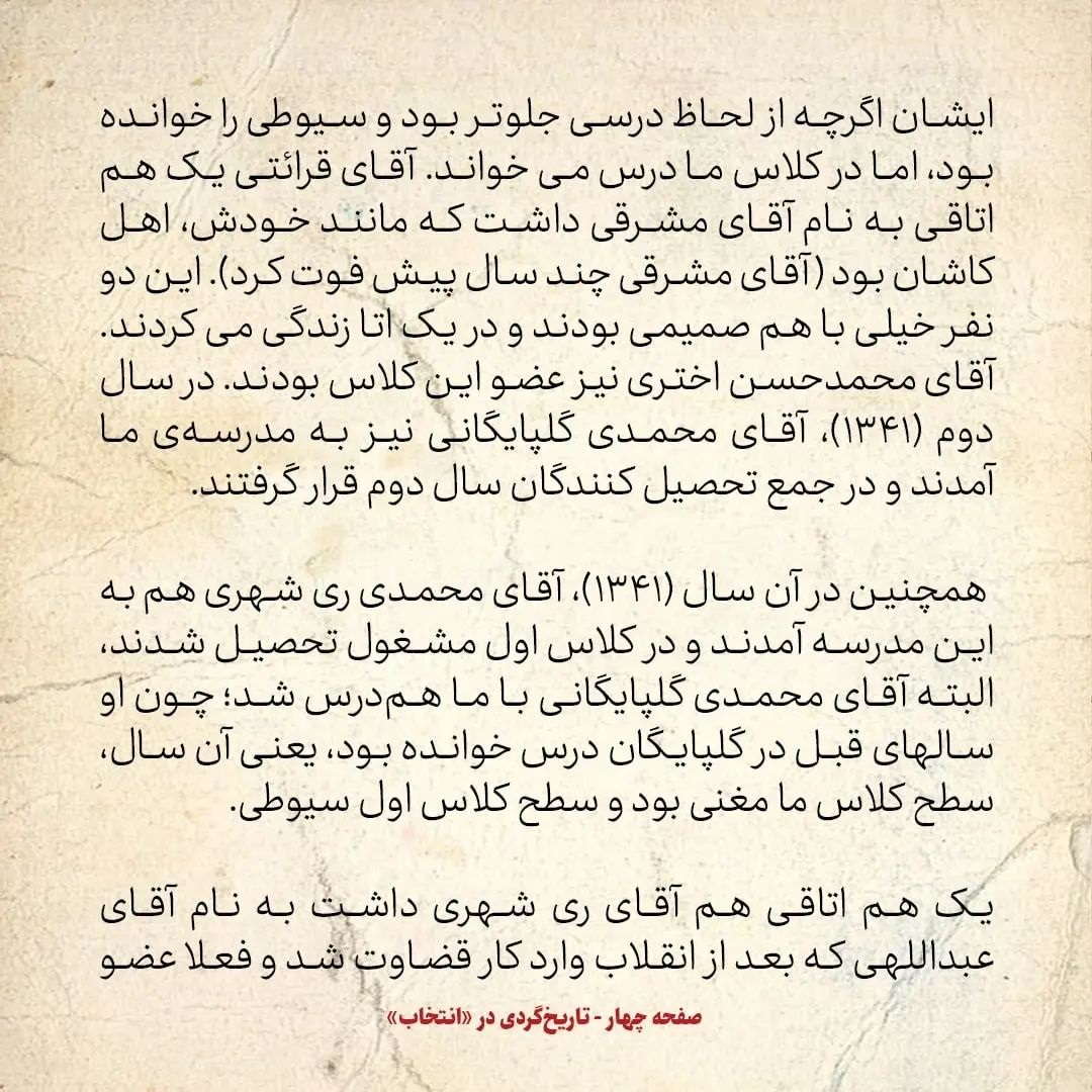 خاطرات حسن روحانی، شماره ۳۱: ری شهری، محمدی گلپایگانی و قرائتی هم دورهایهای من بودند